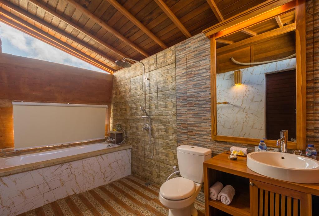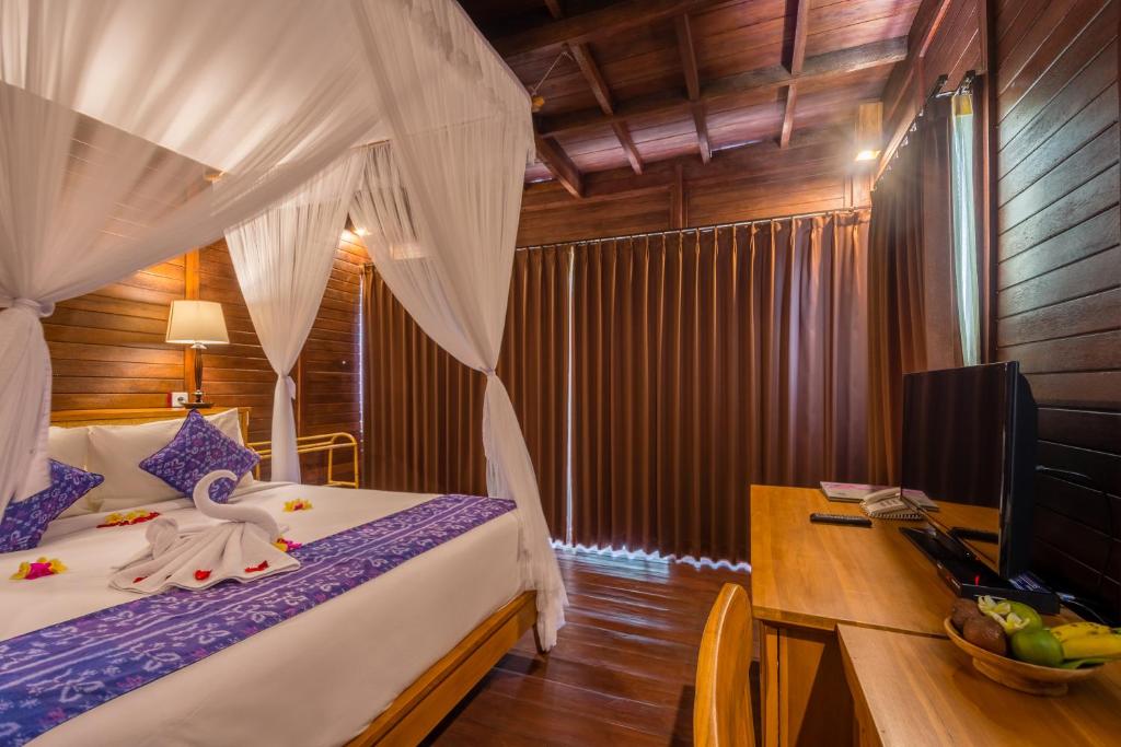 Two Bedroom Pool Villa is a two-storey wooden villa with high-quality furniture and interiors that recreate modern traditional living. The room has a queen size bed, balcony, AC, cable TV, internet connection (WIFI), mini bar and room amenities. Rooms feature bathtubs with standing showers and luxury toiletries.